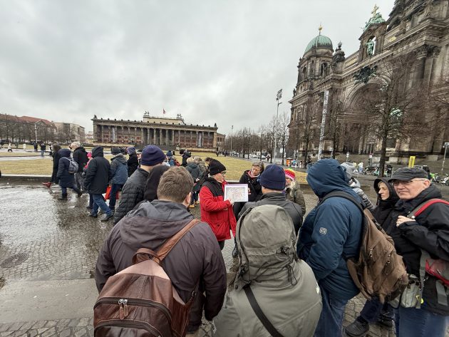 In Berlin haben am 21.02.2026 sieben Gästeführerinnen und die Gästeführer der ca. 300 Mitglieder des Berlin Guide e.V. mit der Aktion „Kostenfreie Führungen“ bei 7 verschiedenen Führungen auf die kulturelle und wirtschaftliche Bedeutung ihrer Berufstätigkeit hingewiesen. Sie luden zu jeweils zwei Führungen ein, die eine um 11:00 Uhr und die andere um 13:00 Uhr. Es gab 190 Meldungen für beide Termine, zuzüglich einer Dunkelziffer, da auch Teilnehmer ohne Anmeldungen kamen.