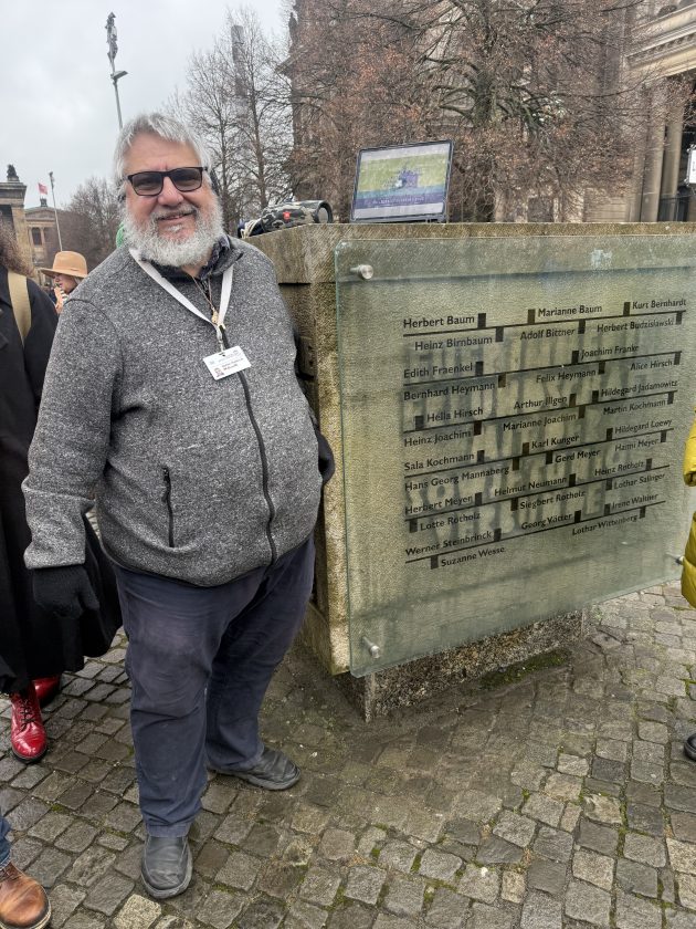 Der Treffpunkt war das Herbert-Baum-Denkmal auf der Museumsinsel gegenüber dem Berliner Dom. Dies ist ein bedeutendes Denkmal in Berlin, das an die Widerstandsgruppe um Herbert Baum erinnert. Die Gruppe, die 1942 einen Brandanschlag auf die antikommunistische Propagandaausstellung „Das Sowjetparadies“ im Berliner Lustgarten verübte, war stark von jungen und jüdischen Widerstandskämpfern um den Kommunisten Herbert Baum geprägt. Der Denkmalstein wurde 1981 im Auftrag des Magistrats von Berlin (Ost) geschaffen und ist ein Symbol für die Geschichte der Gedenkpolitik der DDR und den Umgang damit nach 1989.